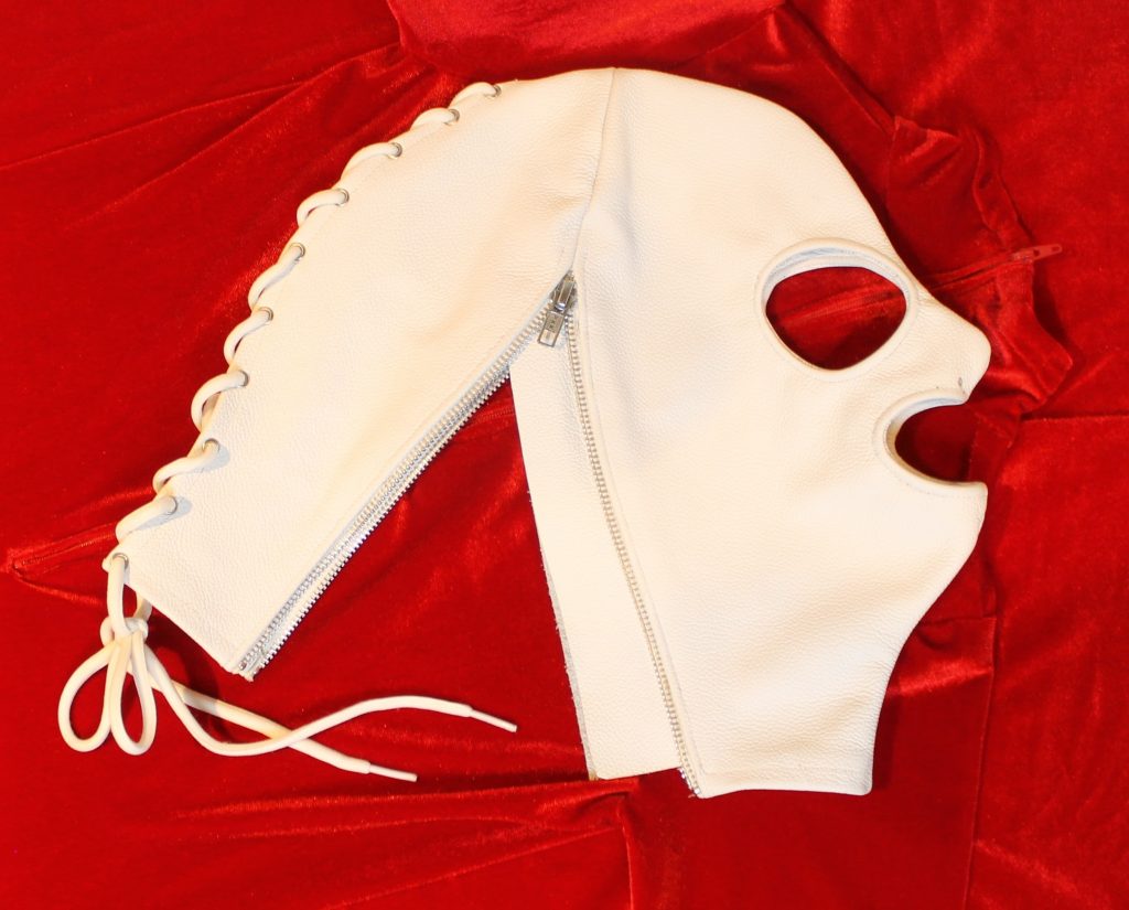 I made an attempt at replicating this white leather mask made by Zana Bayne and A.F. Vandevorst, worn by Rihanna for a 2019 Interview Magazine article. I was intrigued by the side zippers, and I assumed an additional lace closure at the rear – quick in-and-out of a zipper with the comfort and easy fit of a lace closure.