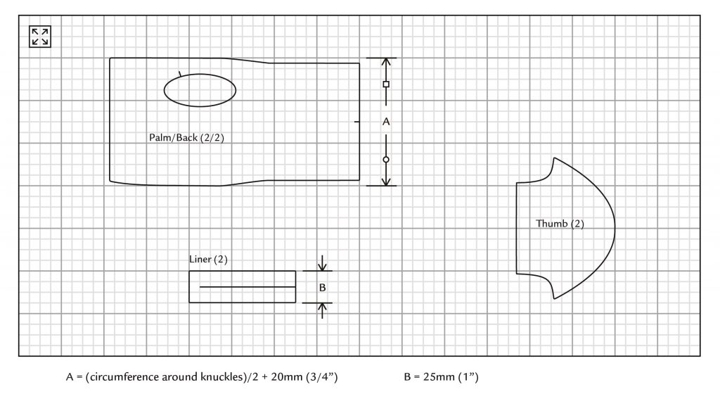 - Trace, mark and cut out all pieces. For the first glove, trace out the first panel with no thumb opening, then flip the pattern over for the second panel and mark a thumb opening in this one. Then, for the second glove, flip the panel over again, trace and include a thumb opening, then flip the pattern over a final time, trace and omit the thumb opening.